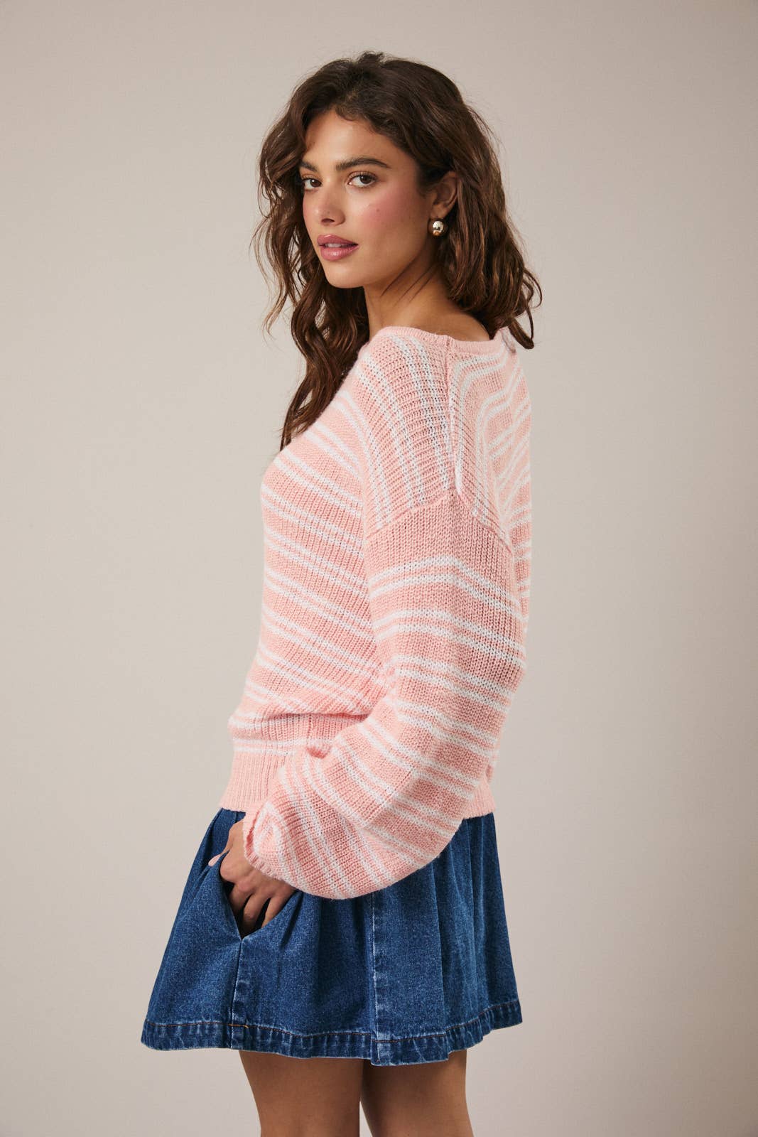 The Boat Neck Stripe Sweater features a boat neck design and long sleeves, providing both style and comfort. The striped pattern adds visual interest while ensuring a flattering silhouette. Ideal for transitional weather, this sweater can enhance layering options and is versatile for various occasions.