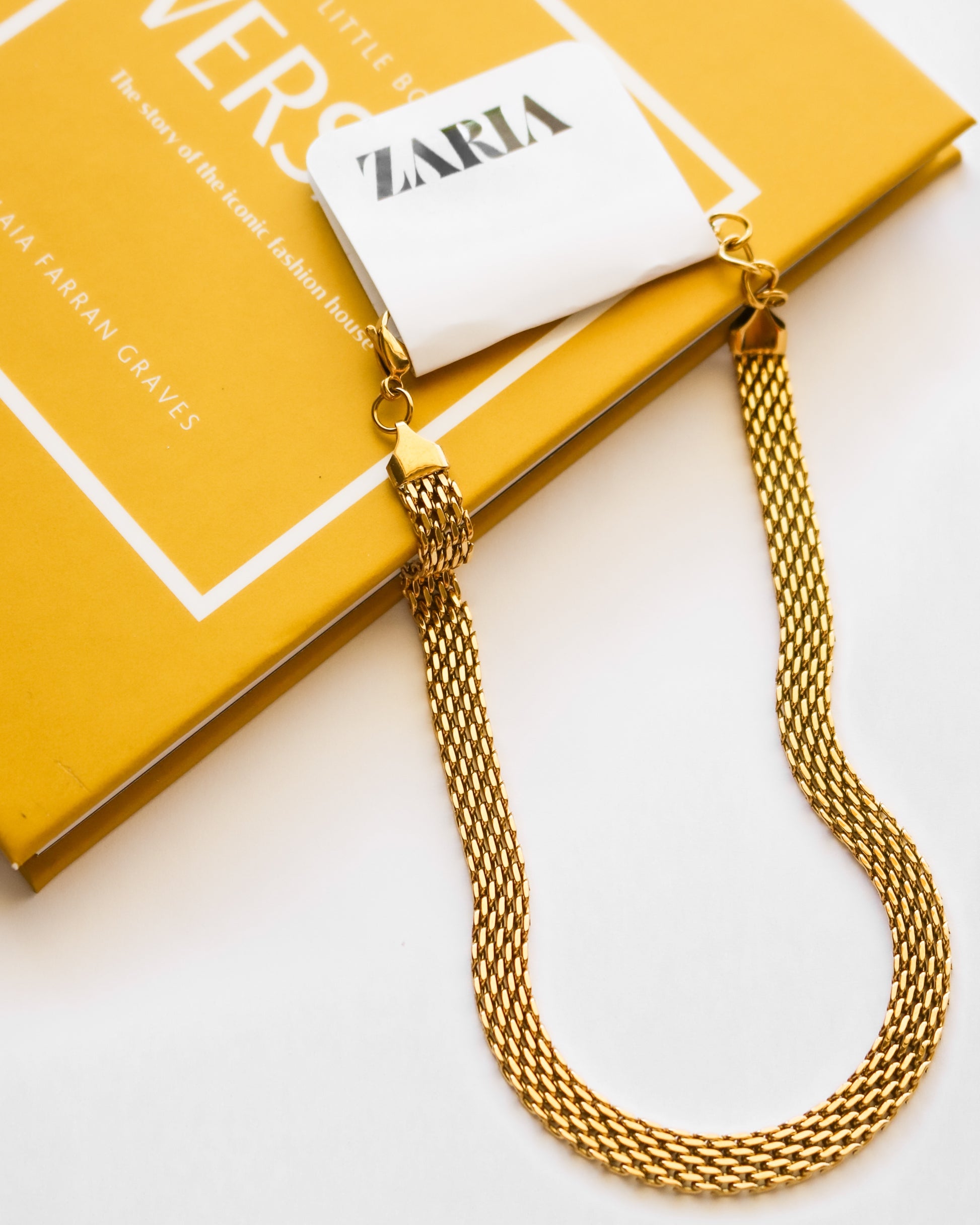 mesh chain choker is the perfect accessory for your year-round looks! Pair with the matching bracelet for a fun matchy matchy statement. Water and tarnish resistant; stainless steel 18k gold plated 12.6" + 3.94"