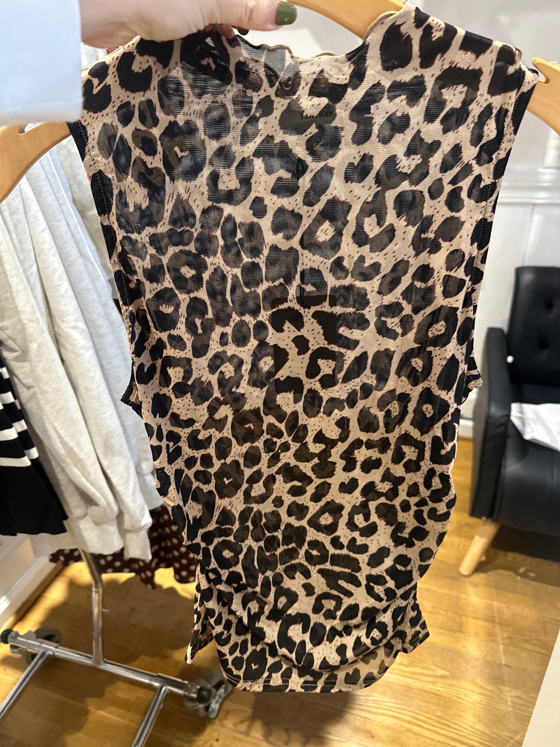 Stay on trend with this stylish Sleeveless Mesh Top in a unique animal print. The mock neck design adds a touch of sophistication, while the lightweight mesh fabric keeps you cool and comfortable. Perfect for a day out or a night on the town.
