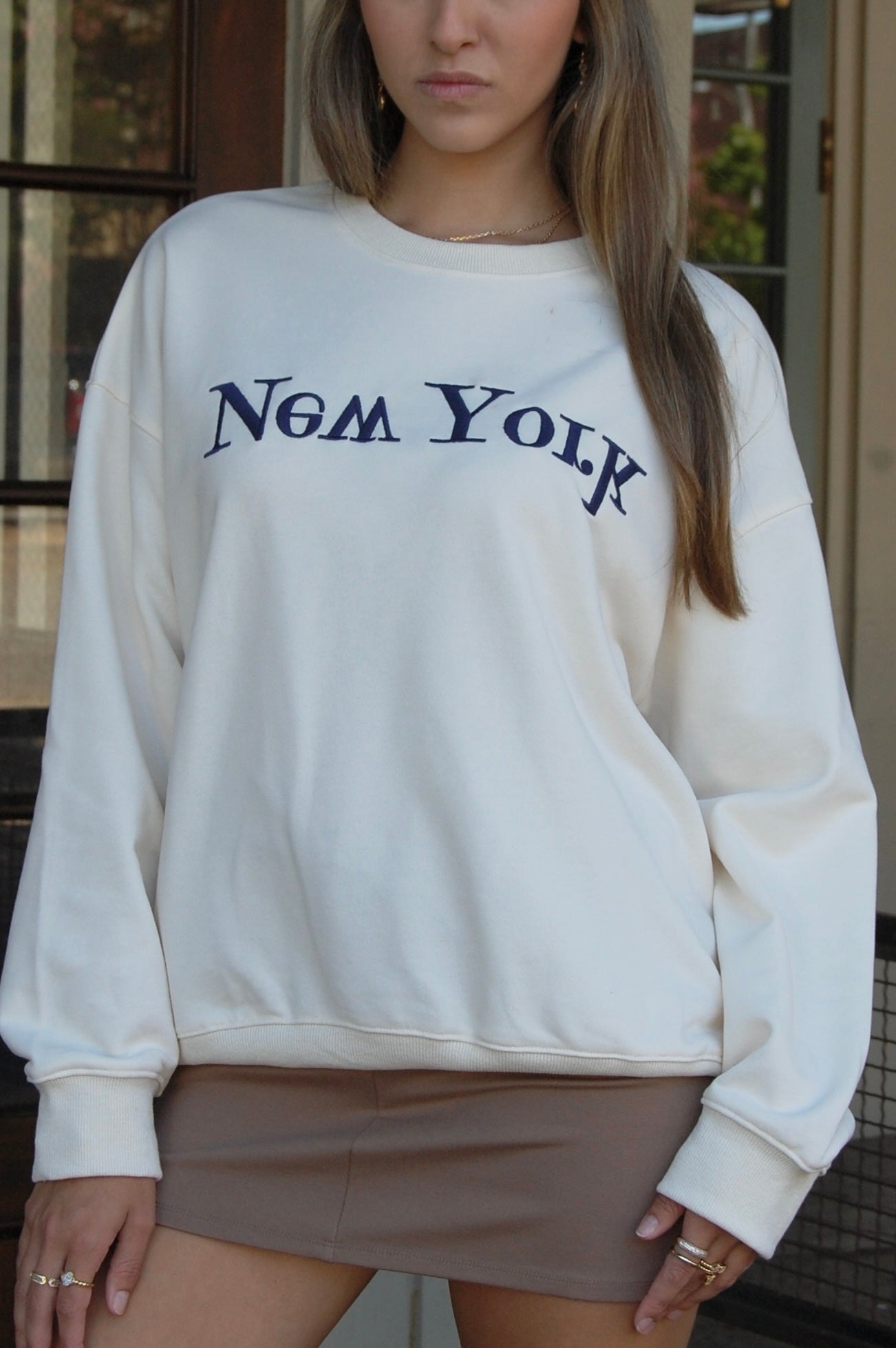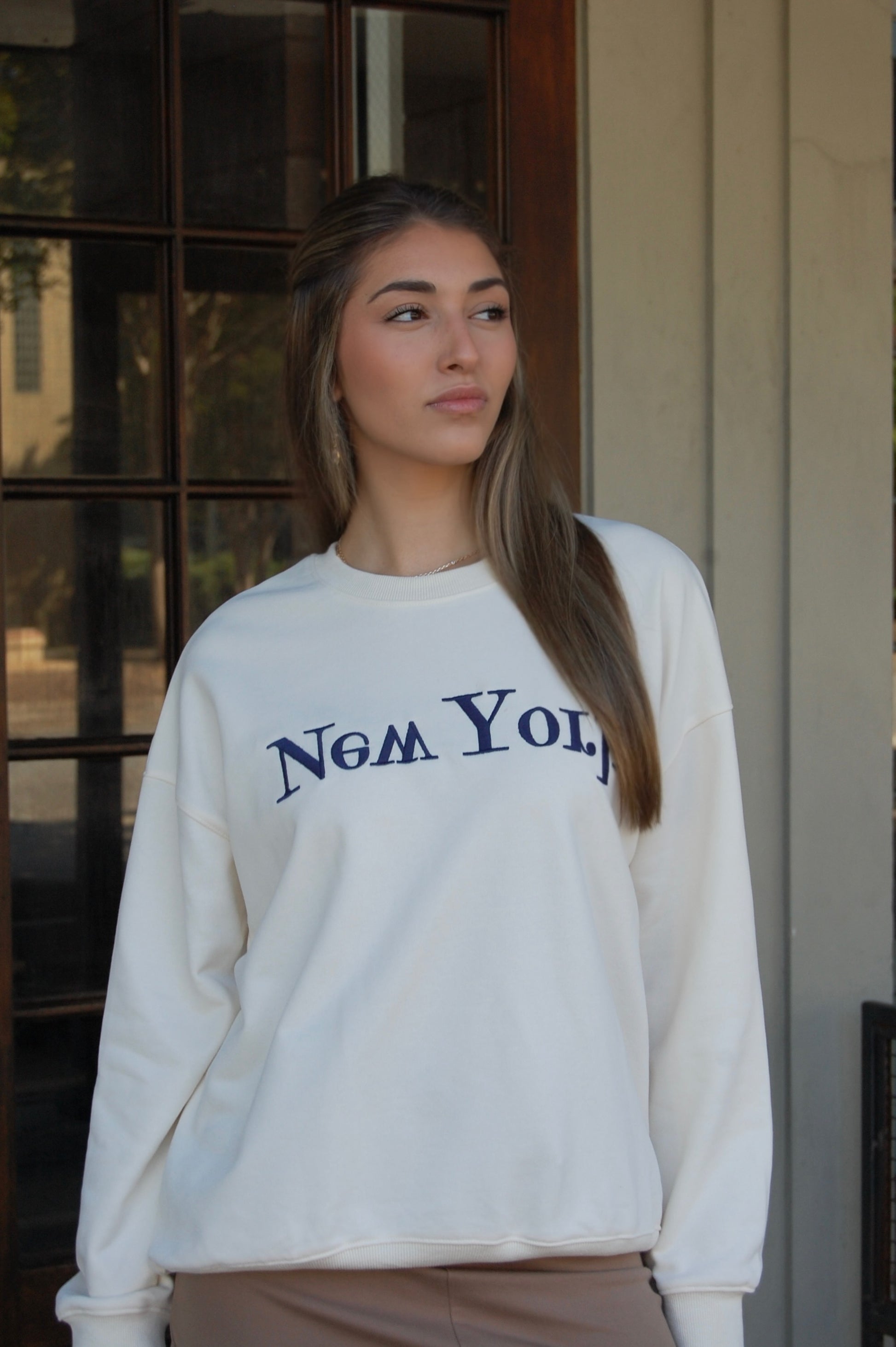 Introducing the sleek and stylish New York Sweatshirt. With a crew neck, long sleeves, and a bold embroidered design featuring the iconic New York skyline, this sweatshirt is the perfect addition to any wardrobe. Made with high-quality materials, it offers both comfort and style. Elevate your look with this must-have piece.