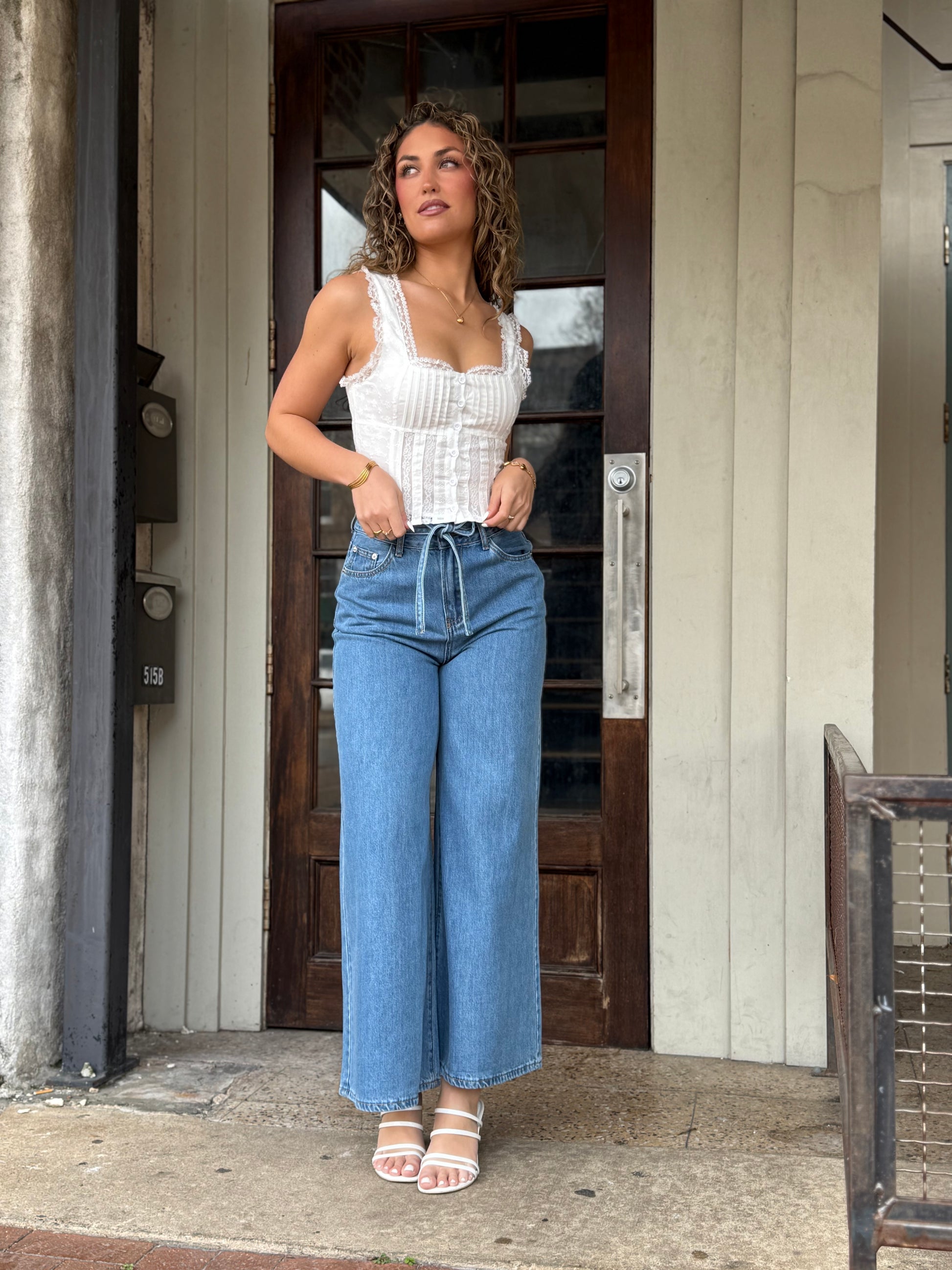 The Wide Leg Pant With Belt features a contemporary design in durable denim, offering both style and comfort. The self-belt enables adjustable fitting, enhancing wearability. This pant style provides a relaxed silhouette, promoting ease of movement, ideal for casual or semi-formal occasions.* * Size & Fit * * * * * * * * * * * * * * * * Model is wearing size S Measurements taken from size S Height - 5' 7 1/2" / 175.3CM