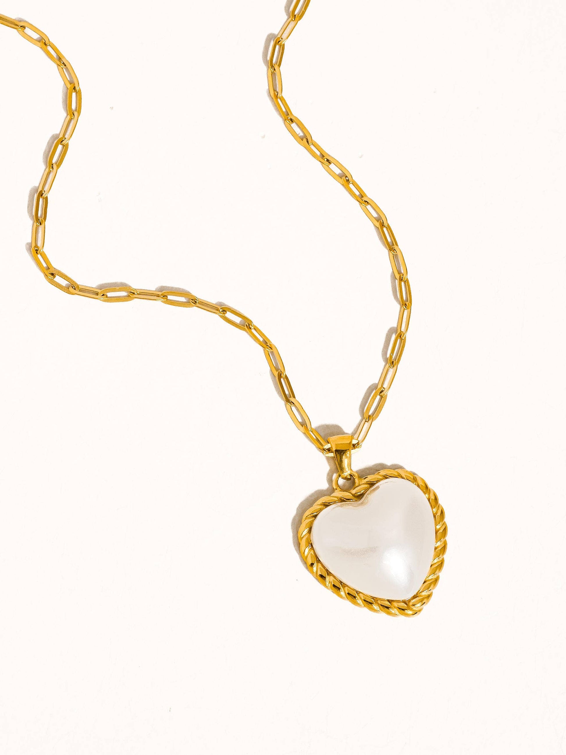 18K Gold Non-Tarnish Heart Pearl Necklace