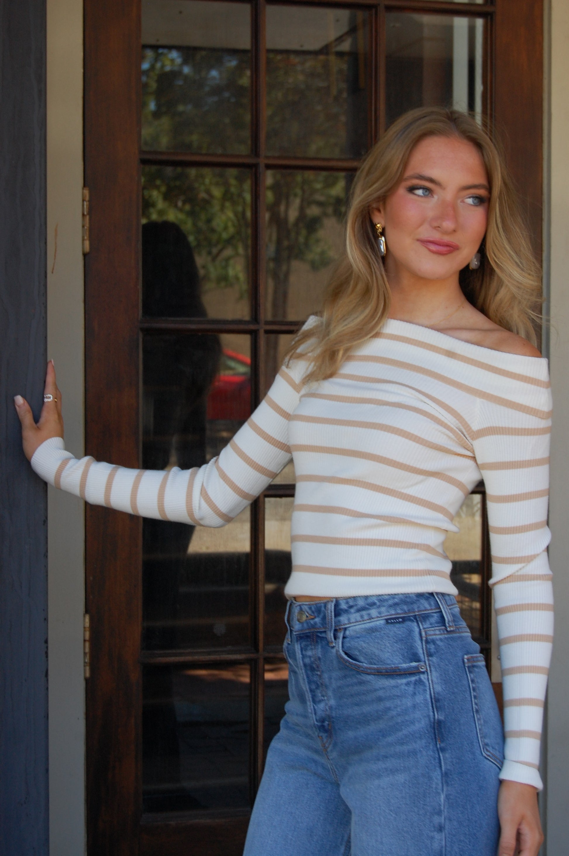 Introducing our Striped Off Shoulder Top, a must-have for any fashion-forward wardrobe. Made with a soft knit material, this top features a chic off shoulder design and trendy stripes. Designed to keep you stylish and comfortable, this top is perfect for any occasion. Upgrade your look today!